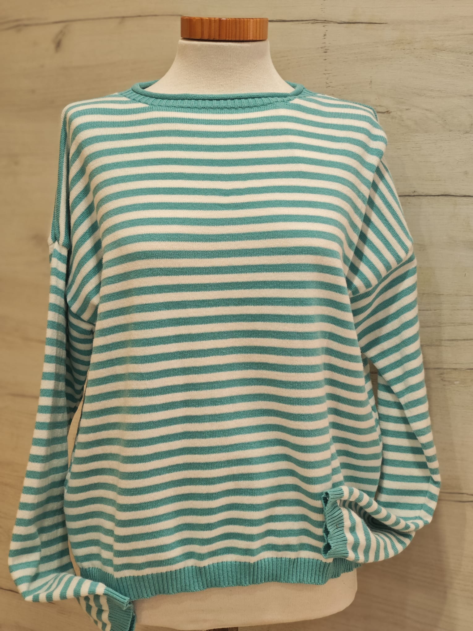 Jersey de manga larga y cuello redondo. Detalle de canalé en cuello, puños y bajo.